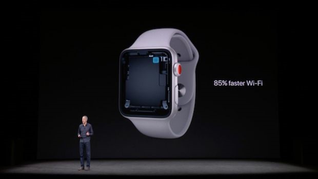 El Apple Watch Series 3 integra un procesador de doble núcleo que presenta un rendimiento un 70% más rápido que su predecesor. De este modo, la compañía pone remedio a uno de los principales lastres de las versiones previas, especialmente el Apple Watch Series 1, que tardaba mucho en abrir las aplicaciones. Además, se ha actualizado a un chip W2, por lo que la conectividad WiFi ha mejorado un 85%.